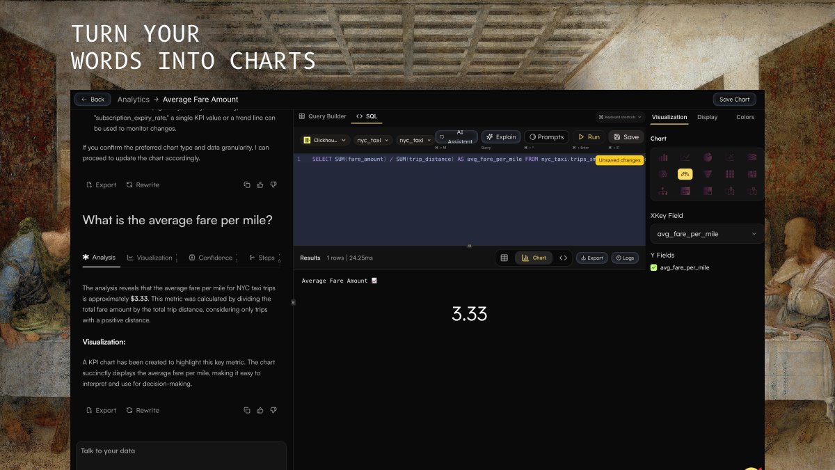 The prominent natural language panel enables intuitive data interaction:Ask Questions Naturally