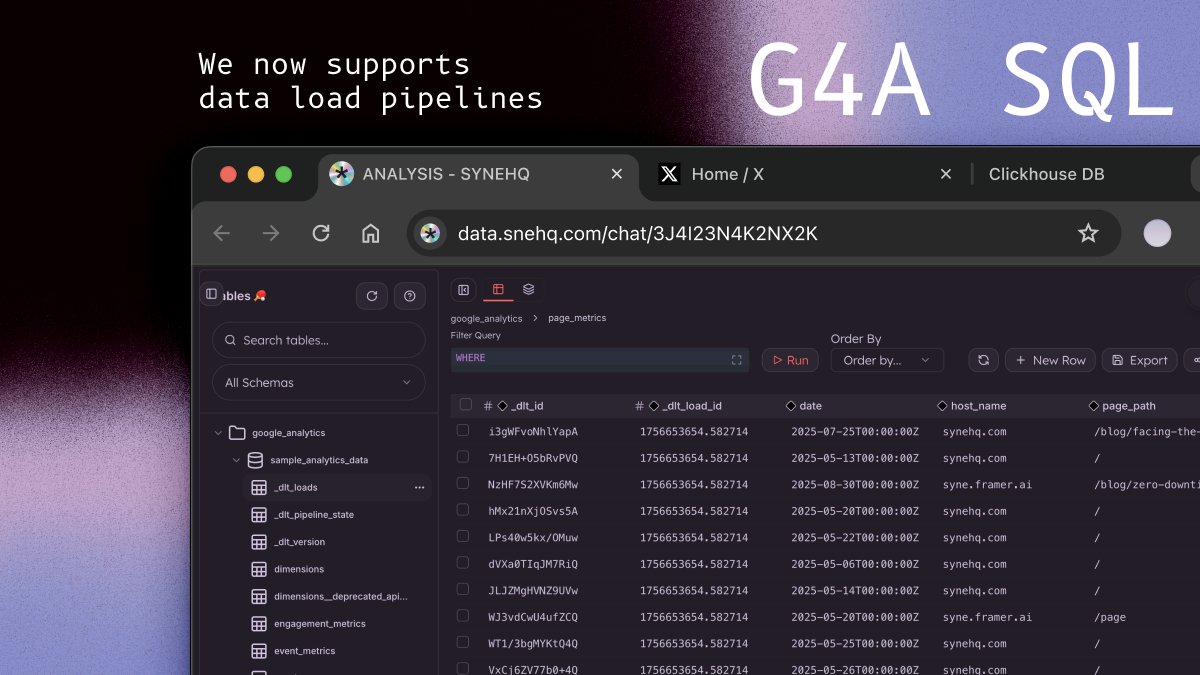 Google Analytics 4 SQL Bridge - Query your GA4 data using standard SQL syntax. Transform analytics insights into actionable data queries.
